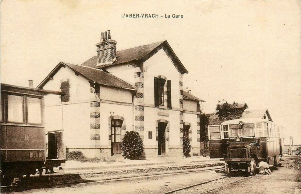 Inaugurée en 1900, la section ferroviaire reliant l’Aber Wrac’h à Lannilis prolongeait le tracé déjà en service entre Lannilis et Brest. Ce train mixte, transportant voyageurs et marchandises, a largement favorisé le développement économique et touristique de l’Aber Wrac’h.La petite locomotive qu’il fallait parfois pousser dans la montée de Saint Antoine.La gare – Remplacée par la maison de la mer (ex centre UCPA).Dans les hauteurs de l’Aber Wrac’h, l’École d’Apprentissage Maritime (EAM), ancêtre du lycée professionnel maritime. D’abord installée dans l’ancienne gare du “train patate”, elle prend place dans ce nouveau bâtiment en 1965 avant de fermer définitivement ses portes en 1993.