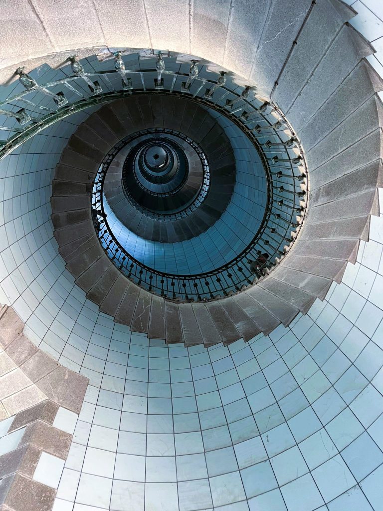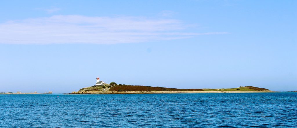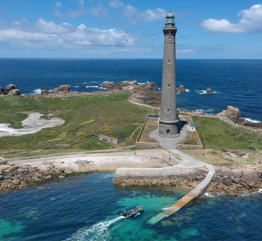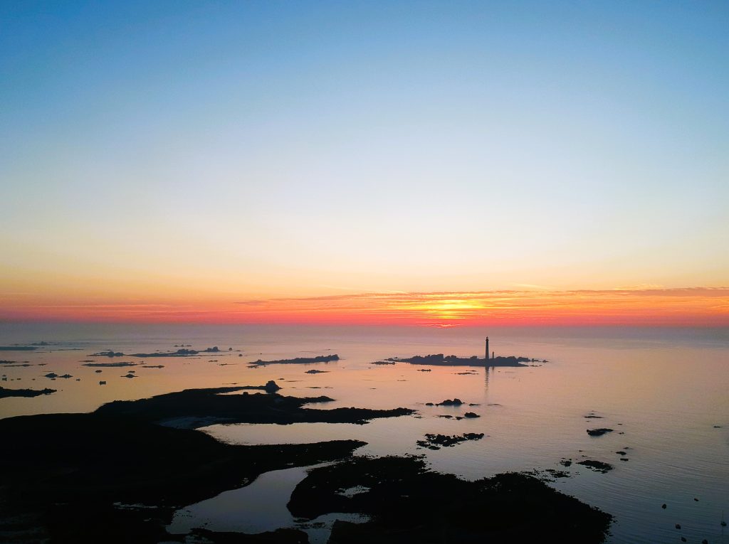 Pas une nuit de repos en 124 ans, campé sur ses récifs, contre vents et marées, beaucoup de marins lui doivent la vie.2 phares pour une ile, le petit et le grand, l’ancien et le moderne. Mais pourquoi 2 phares ?Bienvenue sur l’île Vierge pour un voyage entre terre et ciel.Majestueux à l’extérieur, lumineux à l’intérieur : ses 12 500 carreaux d’opaline diffusent la clarté et repoussent l’humidité.Du haut de ses 383 marches, le chemin de ronde vous dévoile l’océan en version grandeur nature.Le « petit phare » de 1845, détrôné par son grand frère, il a gardé son rôle de maison des gardiens pour devenir un eco-gîte d’exception. Crédit photo François Lochet.Sous les étoiles, les marins ne sont pas seuls, le grand phare veille – Photo sans retouche.Le soleil se lève, la mer reprend ses repères, le phare s’éteint.