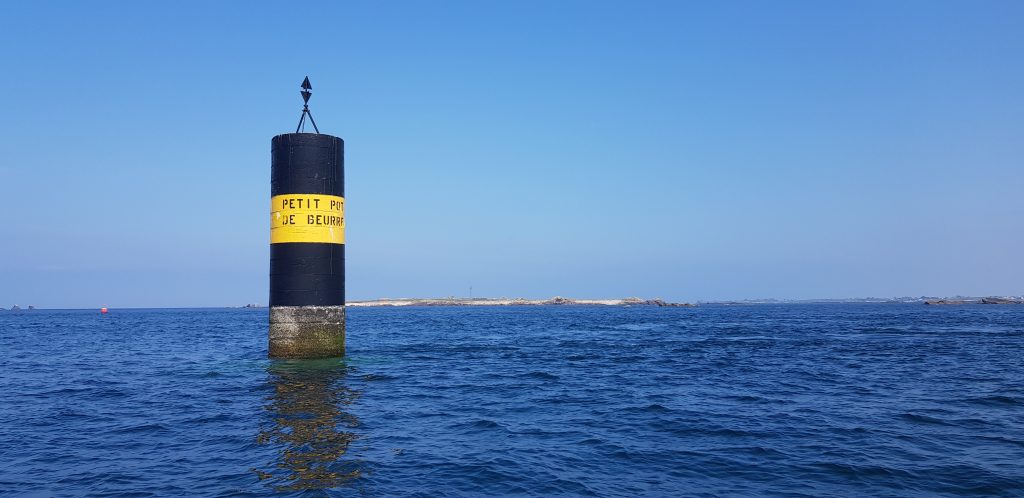 Depuis 1845, le phare de l’île Wrac’h indique avec la tour de Lanvaon, l’alignement d’entrée de l’Aber Wrac’h.Tourelle tribord de Beg an Toul, gardienne de l’entrée du port de Paluden.Le Petit Pot de Beurre, cardinale Est emblématique de l’Aber Wrac’h. Pour les marins, elle annonçait l’entrée dans la zone de salut.Au niveau de l’Île aux Américains, cette bouée latérale bâbord guide les navigateurs dans le chenal de l’Aber Wrac’h.