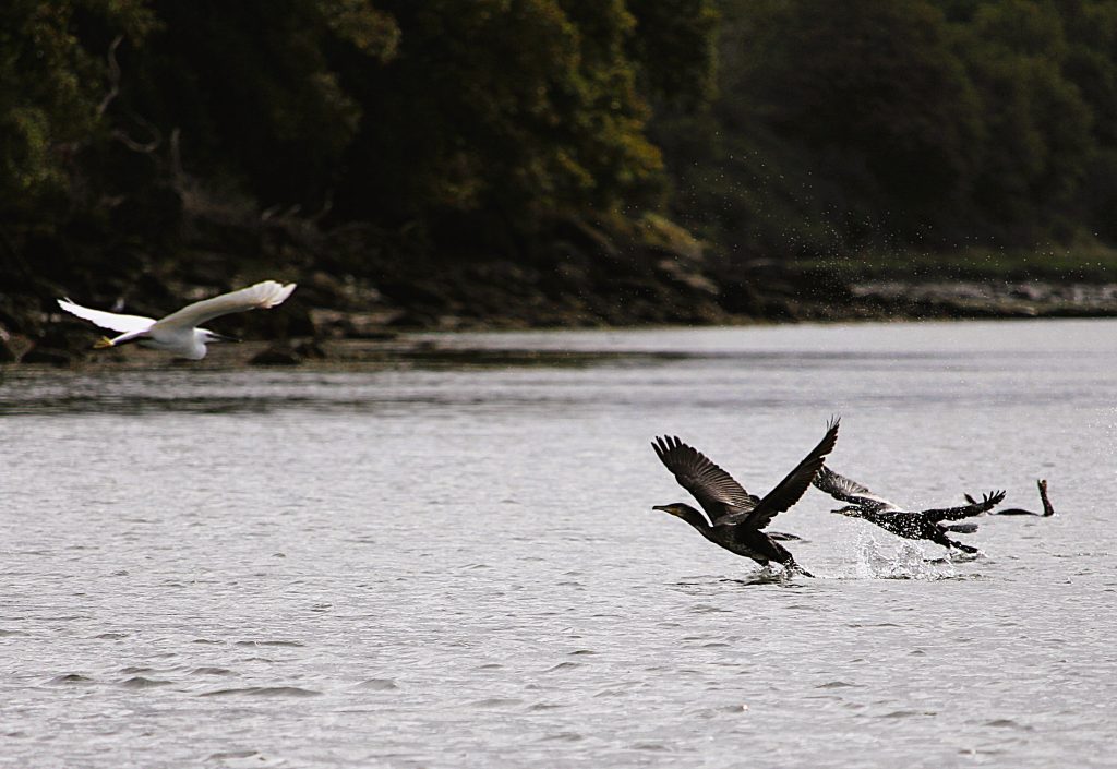 Lors des grandes marées basses, l’aber dévoile son vrai visage : une vallée sculptée par la rivière.Zone de repos, de nourrissage et de reproduction, les immenses vasières de l’Aber terrestre abritent une biodiversité ornithologique exceptionnelle.Aigrettes garzettes et cormorans cohabitent avec de nombreuses espèces, résidentes ou de passage.