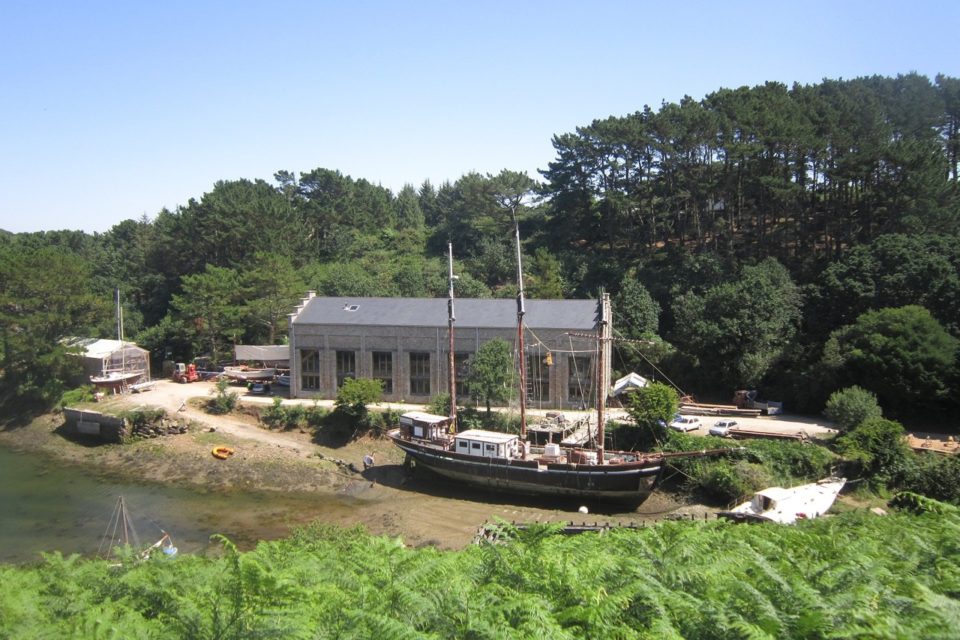 En 1925, l’Aber Wrac’h est désigné pour accueillir le tout premier projet d’usine marémotrice au monde. Les premières infrastructures sont construites, mais la crise de 1929 et les coupes budgétaires en scellent l’abandon.Le bâtiment principal du projet d’usine marémotrice abrite aujourd’hui l’atelier du chantier naval de l’association des Amis du Jeudi Dimanche, plus connue sous le nom de « l’association du Père Jaouen ». Crédit photo Moreau.henri, CC BY-SA 4.0Le Rara Avis et le Bel Espoir, les 2 bateaux amiraux de l’association des Amis du Jeudi Dimanche. Crédit Photo : Association des Amis du Jeudi Dimanche.