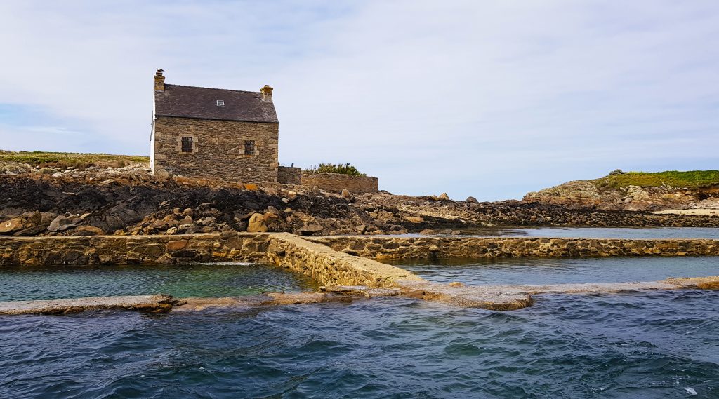 Les viviers, mémoire vive d’un âge d’or des homards et langoustes à l’Aber Wrac’h.La petite maison du gardien des viviers, les pieds dans l’eau…